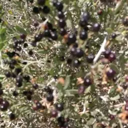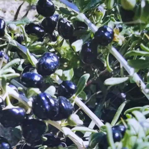 黑果枸杞(学名:Lycium ruthenicum Murr.)是茄科、枸杞属多棘刺灌木,高可达150厘米,多分枝;坚硬,有不规则的纵条纹,小枝顶端渐尖成棘刺状,节间短缩,有簇生叶或花、叶同时簇生,在幼枝上则单叶互生,肥厚肉质,顶端钝圆,基部渐狭,中脉不明显,花生于短枝上;花梗细瘦,花萼狭钟状,花冠漏斗状,浅紫色,裂片矩圆状卵形,耳片不明显;花柱与雄蕊近等长。浆果紫黑色,球状,种子肾形,褐色,5-10月开花结果。