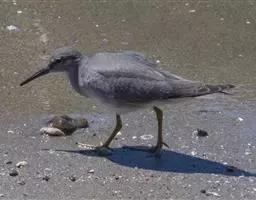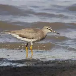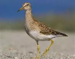 三趾鹬体长约20厘米,是一种近灰色的涉禽。肩羽明显黑色。比其他滨鹬白,飞行时翼上具白色宽纹;尾中央…