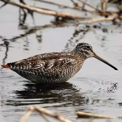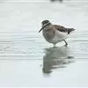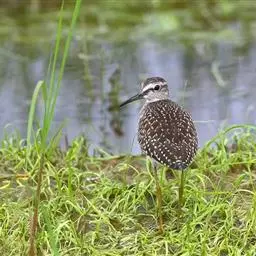 林鹬体长约20厘米,体型略小,纤细,褐灰色,腹部及臀偏白,腰白。上体灰褐色而极具斑点;眉纹长,…