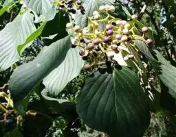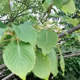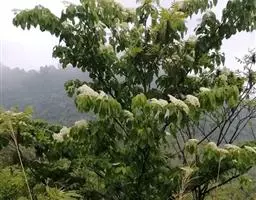 梾木(学名:Cornus macrophylla Wall.)是山茱萸科梾木属植物,乔木,高3-15米,稀达20-25米;幼枝粗壮,灰绿色,有稜角,老枝圆柱形,疏生灰白色椭圆形皮孔及半环形叶痕。叶对生,纸质,阔卵形或卵状长圆形,稀近于椭圆形。伞房状聚伞花序顶生,总花梗红色,花白色,有香味;花萼裂片4,宽三角形;花瓣4,舌状长圆形或卵状长圆形。核果近于球形,成熟时黑色。花期6-7月;果期8-9月。