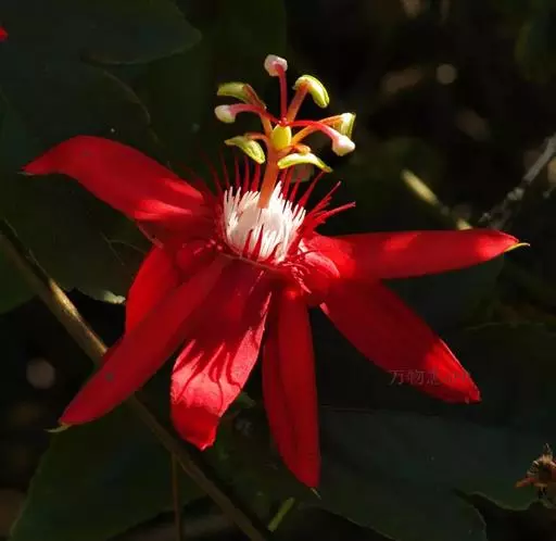 红花西番莲 是西番莲科、西番莲属多年生草质藤本,茎圆形,具卷须,长6-8米。叶互生,长圆形至长卵形,…