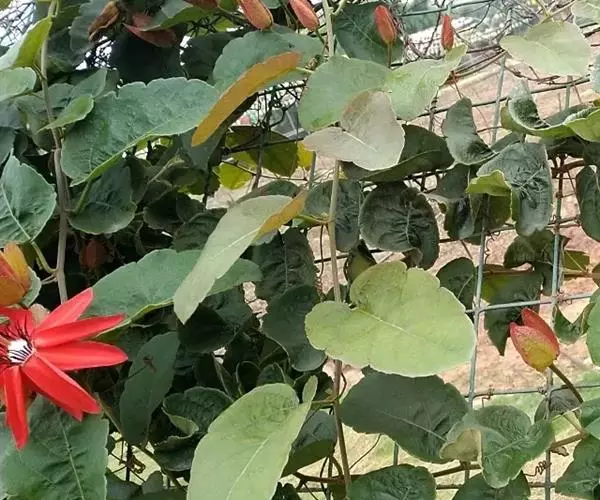 花大,极为艳丽,观赏性极佳。适合棚架、花架、绿廊栅栏及庭园种植观赏,盆栽可用于天台、阳台绿化。 红花西番莲的果实