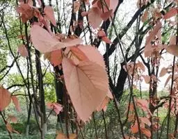 叶卵形至阔披针形或近圆形,长10-20cm,宽5-17cm,表面棕色,两面均被锈色星状短柔毛,有时脱落;叶片不分裂或3-5浅裂,叶柄长6-12cm,先端有2枚小腺体。