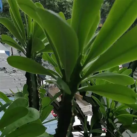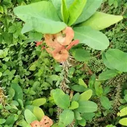 虎刺梅:别称铁海棠,是蔓生灌木植物。茎多分枝,长60-100厘米,直径5-10毫米,具纵棱,密生硬…