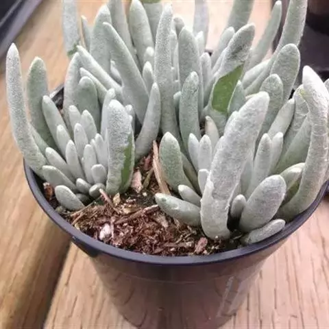 该植株以观茎、观叶为主。全株灰绿,茎似毛笔,叶形奇特别致,肉质感强,洁净素雅。宜小型盆栽欣赏,多在窗台、案几、花架、书架上摆设。为室内优良的小型盆栽多肉观赏植物。 仙人笔