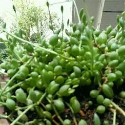 翡翠珠,是菊科千里光属的多年生常绿肉质草本植物。茎纤细,全株被白色皮粉;叶互生,较疏,圆心形,深绿色,…
