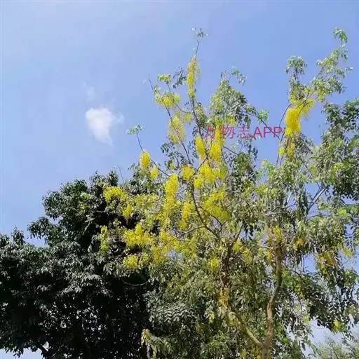 花期在5月,初夏满树金黄色花,花序随风摇曳、花瓣随风而如雨落,所以又名“黄金雨”。