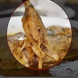 据传,烤羊腿曾是成吉思汗喜食的一道名菜。成吉思汗东征西伐期间,掌管伙食的官员,为了缩短成吉思汗的吃饭时间,以便让他稍事休息,并未征得成吉思汗同意就把成吉思汗经常吃的烤整羊,改为切块烧烤了。当时,成吉思汗战事繁忙,并没有留意这些事。而侍从却天天向给他端一盘烤羊腿让他吃。由于烤羊腿肉质酥香、焦脆、不膻不腻,他非常爱吃。以后,他每天必食,逢人还对烤羊腿赞赏一番。从此,牧民们的餐桌上便多了一道名菜。 随着时间的流逝,居住在城市里的厨师,吸取民间烤羊腿的精华,实行科学烹调,它就逐步成为当今宾馆、饭店的名肴。烤羊腿菜形美观,颜色褐红,肉质酥烂,味道香醇,色美肉嫩,浓香外溢,佐酒下饭,老少皆宜,实乃草原美肴之一。“烤羊腿”是蒙族名菜,流传广远,西北各地,皆有制作。此菜以羊腿为主料,经腌制再加调料烘烤而成。成菜羊腿形整,颜色红润,酥烂醇香,滋味鲜美,回味悠长。