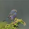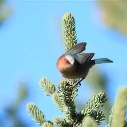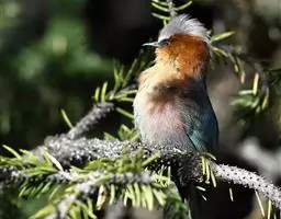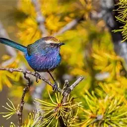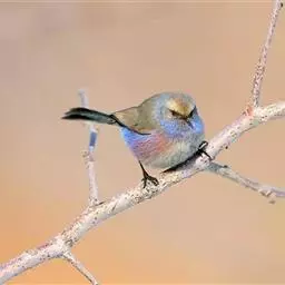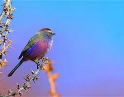 凤头雀莺:小型鸟类。体长9-10厘米,雄鸟呈毛茸茸的紫色和绛紫色,顶冠淡紫灰色,额及凤头白色,尾全蓝。…