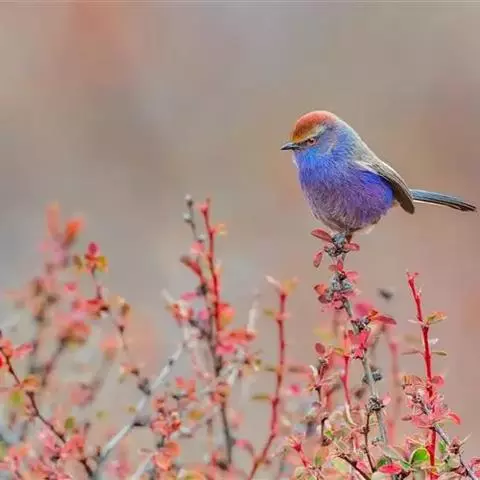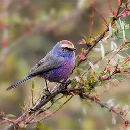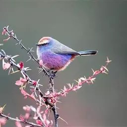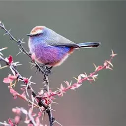 花彩雀莺:体长9-12厘米,是一种毛茸茸偏紫色的雀莺。顶冠棕色,眉纹白。尾长,羽毛松软。…