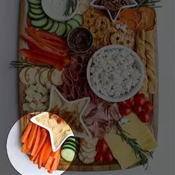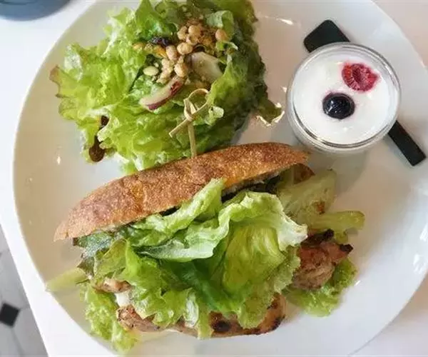 1、将生菜、彩椒、紫甘蓝、松柳芽、樱桃番茄、黄瓜分别洗净,用5%的淡盐水浸泡10分钟;生菜、彩椒、紫甘蓝、黄瓜分别切成片;樱桃番茄对剖;松柳芽切段。