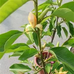 金叶含笑是木兰科,含笑属小乔木,高可达8米。芽圆柱形或狭卵形,嫩枝被淡黄色绒毛,老枝无毛,叶革质,…