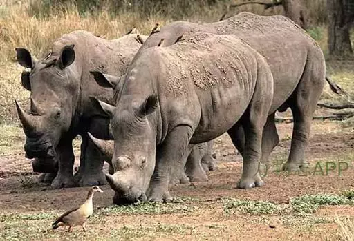 白犀牛是唯一的食草的犀牛物种,几乎全部以短草为食。