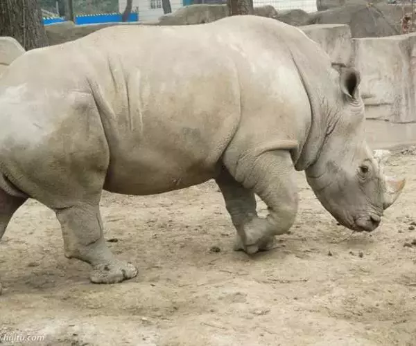 白犀牛 白犀是动物园的珍稀观赏动物,但是动物园里最常见的犀牛。
