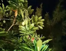 炮弹果,中药名。为夹竹桃科植物清明花Beaumontia grandiflora Wall.[Ec…