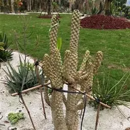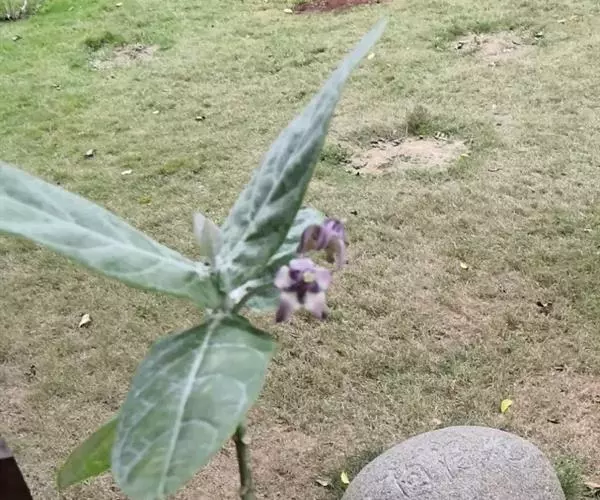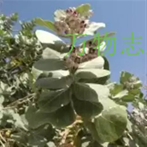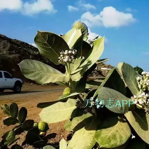 牛角瓜(学名:Calotropis gigantea (L.) Dry.ex Ait.f.)是直立灌木,高达3米,全株具乳汁;茎黄白色,枝粗壮,幼枝部分被灰白色绒毛。叶倒卵状长圆形或椭圆状长圆形,长8-20厘米,宽3.5-9.5厘米。聚伞花序伞形状,腋生和顶生;花序梗和花梗被灰白色绒毛。蓇葖单生;种子广卵形,长5毫米,宽3毫米;种毛长2.5厘米。花果期几乎全年。