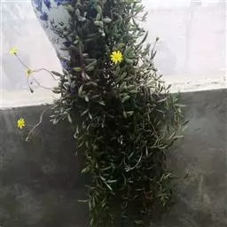 紫弦月,中文正式名黄花新月。多肉植物,菊科厚敦菊属,经常被认为千里光属。紫弦月又称紫玄月、紫佛珠、紫葡萄、玉翠楼等,它的原产地现在还没有官方明确记载。多肉植物的垂吊品种之一,叶片高度肉质化,纺锤形,日照充足时为扁球形。茎不太肉质,平卧地面或垂吊,上常生不定根。平常绿色,日照充分的情况下会从绿色变为紫红色,故得名。秋冬开黄色小花,头状花序,具舌状花,花序直径约1-2cm。搭配自身的紫红色非常漂亮,为种植较为广泛的菊科多肉植物之一。