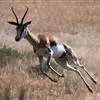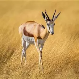 跳羚是哺乳纲、偶蹄目、牛科哺乳动物,属于中型的羚羊。四肢细长;背面毛色黄褐,…