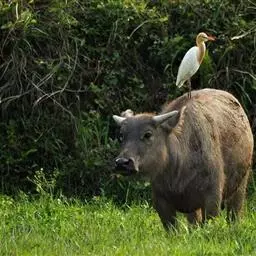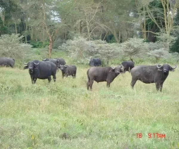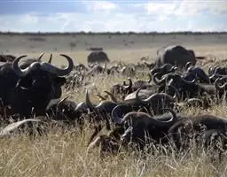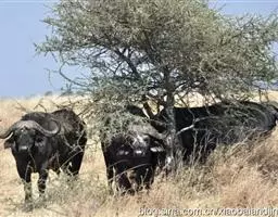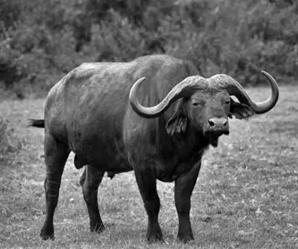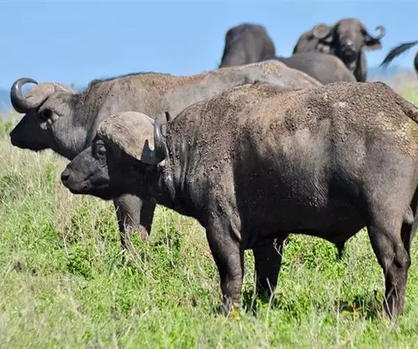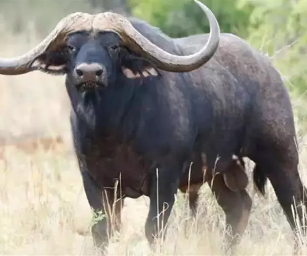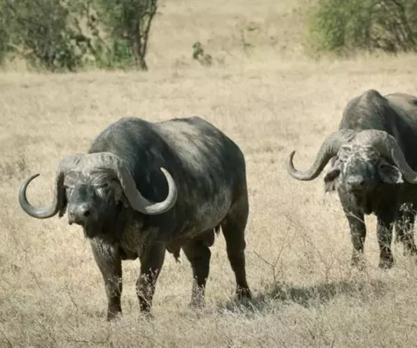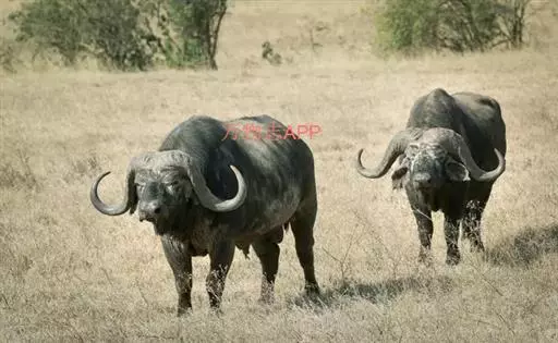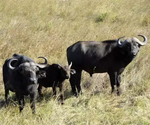 非洲野水牛(学名:Syncerus caffer):共有5个亚种。头体长2.1-3.4米,身高1-1.7米,体重300-900千克。胸膛宽阔,四肢粗壮,头大角长,雄性的角从头部向外和向下扩散,在一些雄性中,角通过覆盖头部的大盾连接。头顶的柔软的毛发附着在大而下垂的耳朵上。身体通常覆盖着稀疏的毛发,通常从棕色到黑色。长尾巴,尾尖处有毛发流苏。雄性个体大于雌性,角也更大更长更厚。而热带草原的种群的体型可以达到森林栖息地的物种的两倍。