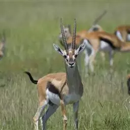 阿拉伯沙瞪羚:是偶蹄目、牛科、瞪羚属的食草动物。头尾长97厘米,身高约55-60厘米。…