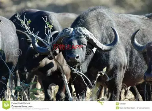 非洲野水牛:共有5个亚种。头体长2.1-3.4米,身高1-1.7米,体重300-900千克。胸膛宽…