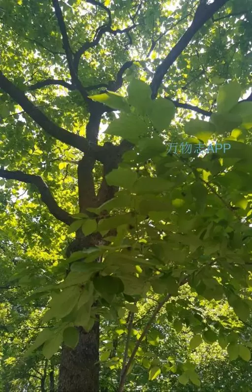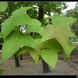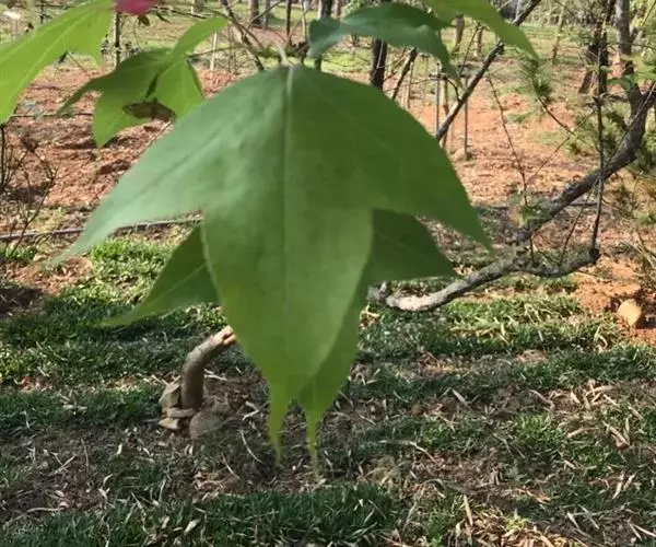落叶乔木,高达30米,胸径最大可达1米,树皮灰褐色,方块状剥落;小枝干后灰色,被柔毛,略有皮孔;芽体卵形,长约1厘米,略被微毛,鳞状苞片敷有树脂,干后棕黑色,有光泽。叶薄革质,阔卵形,掌状3裂,中央裂片较长,先端尾状渐尖;两侧裂片平展;基部心形;上面绿色,干后灰绿色,不发亮;下面有短柔毛,或变秃净仅在脉腋间有毛;掌状脉3-5条,在上下两面均显著,网脉明显可见;边缘有锯齿,齿尖有腺状突;叶柄长达11厘米,常有短柔毛;托叶线形,游离,或略与叶柄连生,长1-1.4厘米,红褐色,被毛,早落。