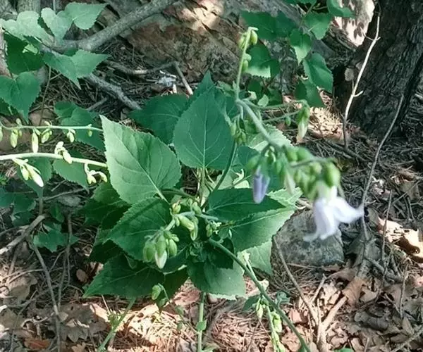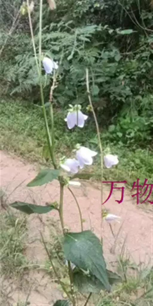 荠苨形态 多年生草本,有白色乳汁。根胡萝卜状。茎单生,高40~20厘米,直径可达近1厘米,无毛,常多少之字形曲折,有时具分枝。基生叶心胜肾形,宽超过长;茎生叶具2~6厘米长的叶柄,叶片心形或在茎上部的叶基部近于平截形,通常叶基部不向叶柄下延成翅,顶端钝至短渐尖,边缘为单锯齿或重锯齿,长3~13厘米,宽2~8厘米,无毛或仅沿叶脉疏生短硬毛。花序分枝大多长而几乎平展,组成大圆锥花序,或分枝短而组成狭、圆锥花序。花萼筒部倒三角状圆锥形,裂片长椭圆形或披针形,长6~13毫米,宽2.5~4毫米;花冠钟状,蓝色、蓝紫色或白色,长2~2.5厘米,裂片宽三角状半圆形,顶端急尖,长5~7毫米;花盘筒状,长2~3毫米,上下等粗或向上渐细;花柱与花冠近等长。蒴果卵状圆锥形,长7毫米,直径5毫米。种子黄棕色,两端黑色,长矩圆状,稍扁,有一条棱,棱外缘黄白色,长0.8~1.5毫米。花期7~9月。