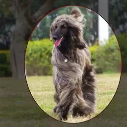 阿富汗猎犬全身披丝绢状的长毛,毛色鲜艳,呈多种颜色,背中线附近毛短,…