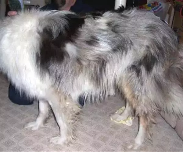 双层被毛,外层披毛由长、直、粗硬的毛发组成,底毛柔软、浓厚、浓密,使被毛有被“撑起来”的感觉。脸部、耳朵、足爪的毛发较短。有丰厚的鬃毛和饰毛,而且雄性更为明显。前肢有饰毛,后肢也有,而且很丰厚,但在飞节以下部位毛发较短。尾巴上的毛发浓厚。黑色、蓝色陨石色、或深褐色(从金色到桃木色都可以),带有不同程度的白色斑纹(带有或不带棕色) 。