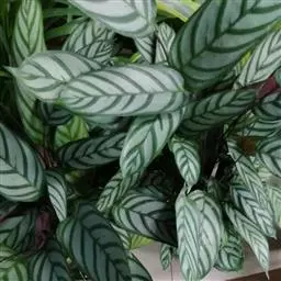 猫眼竹芋 :竹芋科,肖竹芋属多年生常绿草本观叶植物。株高可达100厘米,叶片长椭圆形,头状花序,…