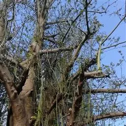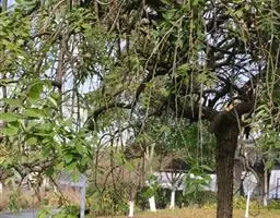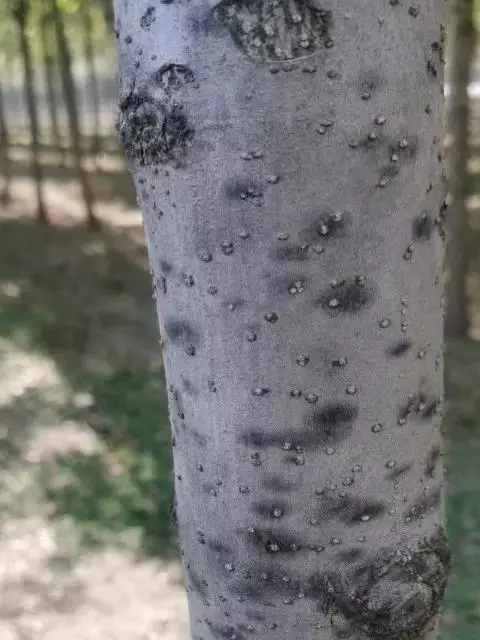 树皮暗灰色,粗糙,不规则纵裂。幼树枝条直立,且被白色毛;老树枝条先端下垂,有时木栓质发达成为瘤状。…