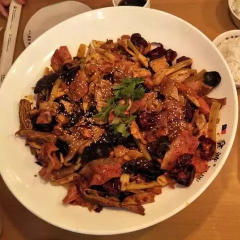 新疆大盘鸡又名为沙湾大盘鸡,是新疆名菜,起源于20世纪80年代,主要用料为鸡块和土豆块、四川粉皮,…