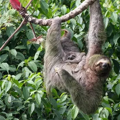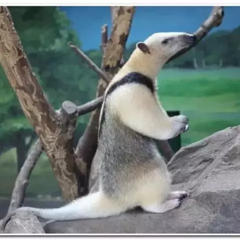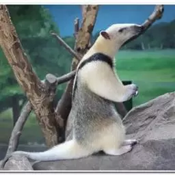 食蚁兽:哺乳动物,主要栖于中美和南美,南至阿根廷热带森林中。这一类群在捕食蚂蚁和白蚁方面已有高度特化。食蚁兽结构上的特征,是与其捕食昆虫的一系列活动相联系的。头骨长而大致呈圆筒状,颧骨完全,长 小食蚁兽 的鼻吻部有复杂的鼻甲。齿骨细长,无齿。蠕虫状的长舌能灵活伸缩,舌富有由唾液腺分泌的唾液和腮腺分泌物的混合粘液,用于粘取众多的蚁类。这些发达的腺体位于颈部。前肢有力,第三趾粗大,长着强而弯曲的爪,其余各趾缩小。地栖的大食蚁兽用指关节及弯曲的趾行走,而小食蚁兽,即二趾食蚁兽和环颈食蚁兽完全或部分过着树栖生活,步行时,前肢靠带弯爪的内向趾背着地。食蚁兽体型大小相差悬殊,小食蚁兽大似松鼠,不过350克,而大食蚁兽重达25公斤。大食蚁兽全身有长而粗的毛,毛色棕褐色,尾部肥大多下垂的长毛,而其他树栖种类身上和尾部的毛均较短,且尾有抓挠能力。