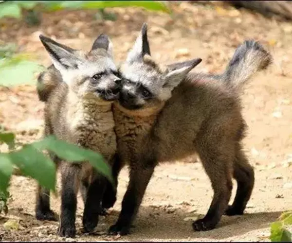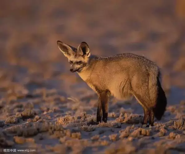 大耳狐(学名:Otocyon megalotis)有蝙蝠翅膀一样的耳朵,最长可达14厘米。实际上,其种名“megalotis” 源自希腊词“mega”和“otus”,意即大耳。一双大耳朵在沟通交流、寻找食物等诸多方面发挥着重要作用。皮毛色彩淡黄至深蜜色不等,具体颜色取决于年龄和发现区域。鼻口比其他狐狸大,呈灰黑色,两侧末梢灰白色。高尖齿,可快速高效咀嚼昆虫食物,以助消化。