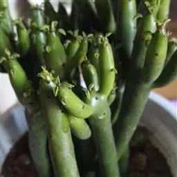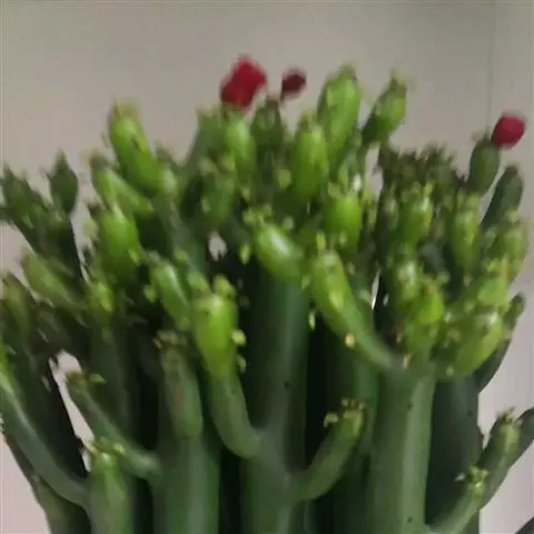 魁伟玉原产南非,是一种大戟科的多年生肉质植物,植株具粗圆筒形肉质茎,有10条以上的突出棱,…