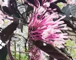 米团花是大灌木至小乔木,高1.5—7米,叶片多破碎,皱缩,黄绿色至黄褐色,完整叶片展平后呈椭圆状披针形,长10-22cm,幼叶两面被绒毛;叶柄长1.5-3cm。