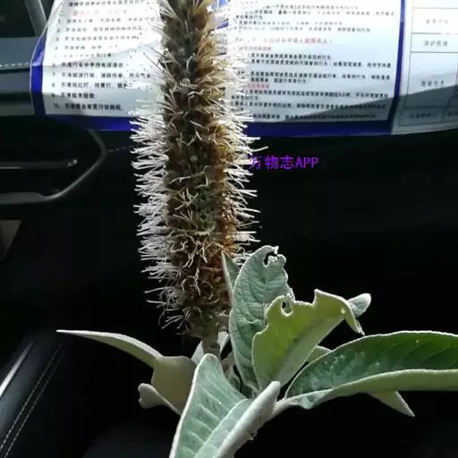 大灌木至小乔木,高1.5-7米,树皮灰黄色或褐棕色,光滑,片状脱落,新枝被灰白色至淡黄色浓密的绒毛,老枝淡棕色,被微柔毛或几无毛。叶柄长1.5-3厘米,有时达4.5厘米,被淡黄色浓密的簇生绒毛;叶片纸质或坚纸质,椭圆状披针形,长10-23厘米或以上,宽5-9厘米或以上,先端渐尖,基部楔形,边缘具浅锯齿或锯齿,有时几为圆齿,幼时两面密被灰白或淡黄色的星状绒毛及丛卷毛,老时上面通常脱落至无毛或仅中脉被微柔毛,背面被浓密灰白或淡黄色的星状绒毛及丛卷毛。花序为由轮伞花序排列成长10-13厘米或以上的顶生稠密圆柱状穗状花序;苞片大,近肾形,先端急尖,全缘或具不规则的齿,外被星状绒毛,果时脱落,小苞片微小,线形,长约1毫米,外密被星状绒毛;花梗短,长约1毫米,密被星状绒毛。花萼钟形,长6-8毫米,外面被浓密的淡黄色簇生星状绒毛及粉囊状小突起,内面无毛而明显可见约15脉,萼齿5(-7),整齐,三角形,长1.5毫米或稍短。花冠白色或粉红至紫红,筒状,长8-9毫米,外面被簇生星状绒毛,冠筒内藏,冠檐二唇形,上唇顶端微凹,下唇3裂,中裂片较大。小坚果长圆状三棱形,顶端平截,背面平滑,腹面具稀疏的半透明小突起,果脐小,位于果的基部,胚小,倒卵形,长为小坚果2/5,有胚乳。花期11月至翌年3月,果期3-5月。