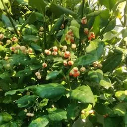 常绿灌木或小乔木,高达8米。 叶光亮革质,倒卵形或窄长椭圆形,长3-6厘米,宽2-3厘米。 聚伞花…