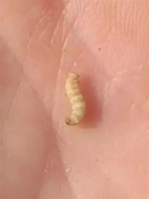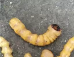斗米虫为锈色粒肩天牛的幼虫,锈色粒肩天牛主要危害槐树Sophora japonica,…