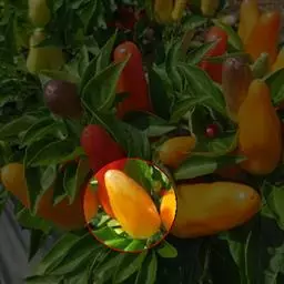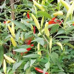 五彩椒系椒中之珍品, 它集食用、药用、观赏于一体, 同株果实有绿、黄、白、紫、红五色, 鲜艳夺目, 具有光泽。株高约50厘米左右, 株产果可达250个, 辣味素含量是普通辣椒的10倍, 凡能生长普通甜椒、辣的地方均可种植。
