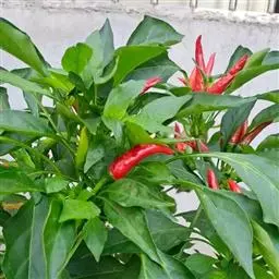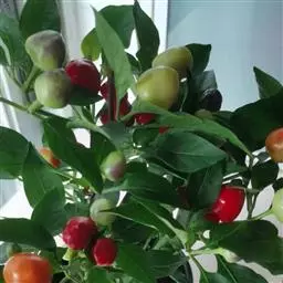 五彩椒是辣椒中之珍品,也是一种优良的盆栽观果花卉,同株果实有绿、黄、白、紫、红五色,鲜艳夺目,具有光泽、点缀于绿叶之中,玲珑可爱。株高约50厘米左右,株产果可达250个,集食用、药用、观赏于一体,辣味素含量是普通辣椒的10倍。