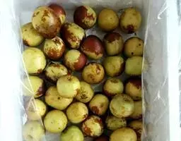 滇刺枣(学名:Ziziphus mauritiana Lam.)是鼠李科枣属植物,常绿乔木或灌木,高达15米;幼枝被黄灰色密绒毛,小枝被短柔毛,老枝紫红色。叶纸质至厚纸质,卵形、矩圆状椭圆形,稀近圆形。花绿黄色,两性,5基数,数个或10余个密集成近无总花梗或具短总花梗的腋生二歧聚伞花序。核果矩圆形或球形,橙色或红色,成熟时变黑色,基部有宿存的萼筒;果梗长5-8毫米,被短柔毛;种子宽而扁,红褐色,有光泽。花期8-11月,果期9-12月。