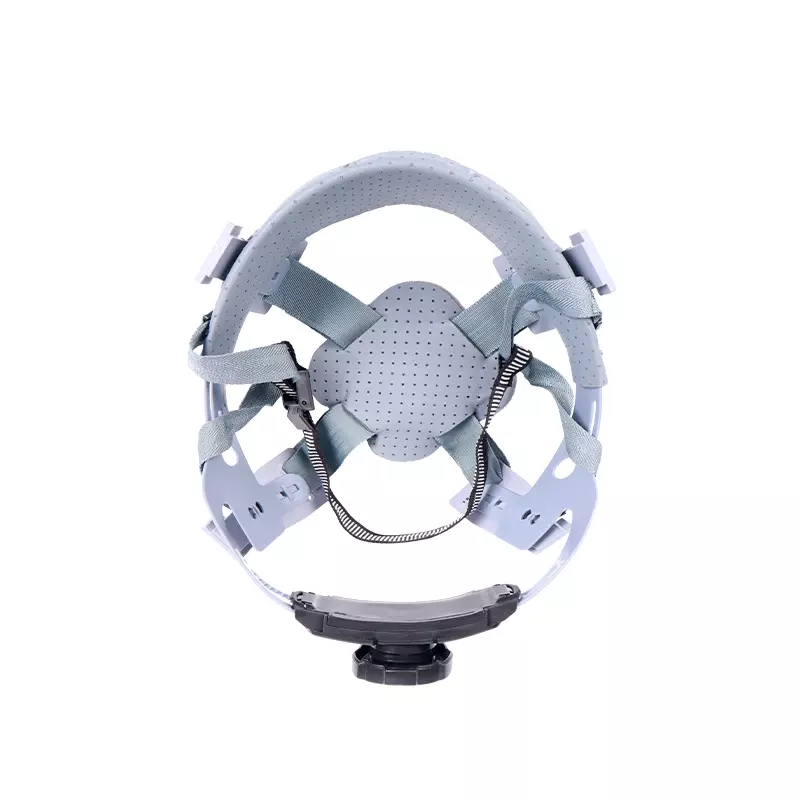 (2)分散应力作用:帽壳为椭圆形或半球形,表面光滑,当物体坠落在帽壳上时,物体不能停留立即滑落;而且帽壳受打击点的承受的力向周围传递。通过帽衬缓冲减少的力可达2/3以上,其余的力经帽衬的移个面积传递给人的头盖骨,这样就把着力点变成了着力面,从而避免了冲击力在帽壳上某点应力集中,减少了单位面积受力。