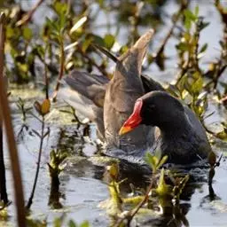 黑水鸡:是鹤形目、秧鸡科的鸟类,共有12个亚种。中型涉禽,体长24-35厘米。嘴长度适中,…