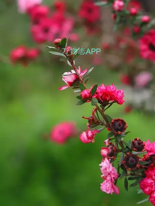 松红梅,拉丁学名(Leptospermum scoparium),常绿小灌木,桃金娘科,是近年来引进的园林花卉品种。