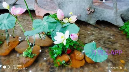 花蕾圆桃型,黄绿色,花径8-10cm,半重瓣型,着花较少,雌蕊发育正常。 碗莲