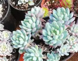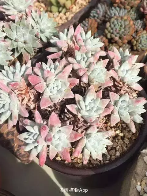 大和锦是景天科拟石莲花属的多肉植物。肉质叶排成紧密的莲座状,广卵形至散三角卵形,背面突起呈龙骨状,…