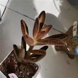 黑兔耳是景天科伽蓝菜属直立肉质灌木。叶片对生,长梭形、叶片被深褐色的斑点包围;新叶黄褐色,…