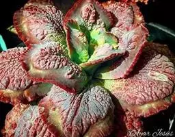 红缘莲花掌属蔷薇目、景天科植物,原产大西洋的加那利群岛。质厚,蓝绿色,被白霜,叶缘红褐色。聚伞花序,…