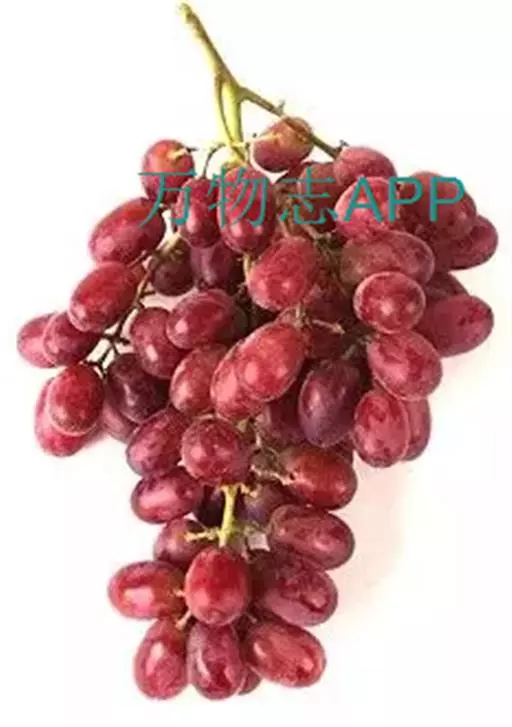红提,又名晚红、红地球、红提子,属欧亚种,是由美国加利福尼亚州立大学于70年代用(皇帝×L12-80)×S45-48杂交育成。果穗大,整齐度好,平均单粒重10 克,最大单粒重13克,红色或紫红色。